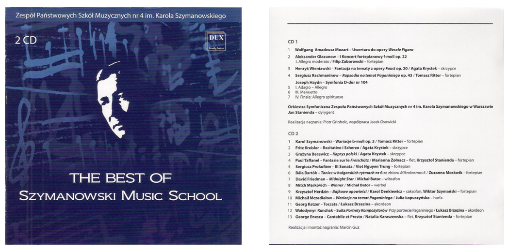 Miło nam poinformować, że Fundacja „Muzyka-Pasja-Talent”, wspólnie z Radą Rodziców przy ZPSM nr 4, dofinansowała wydany w 2014 roku przez Firmę DUX 2-płytowy album.